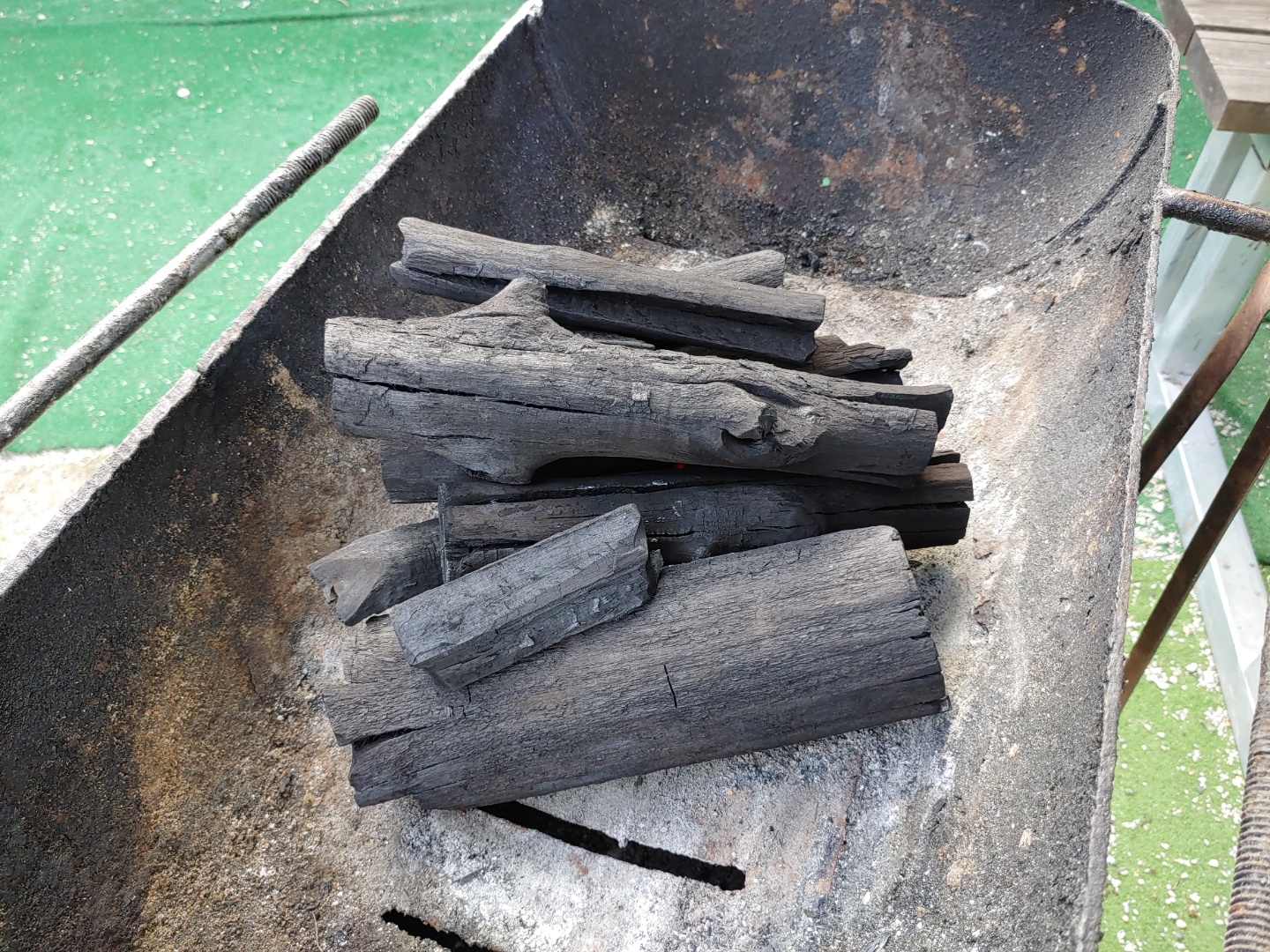 신나게 물놀이를 하고 허기가 질 때쯤 숯불을 피워 달라고 말씀드렸습니다. 다른 펜션과는 다르게 숯은 정말 좋았습니다. 숯불 피는 시간이 대략 30분 정도 걸리니 시간에 맞춰 요청하시면 됩니다.