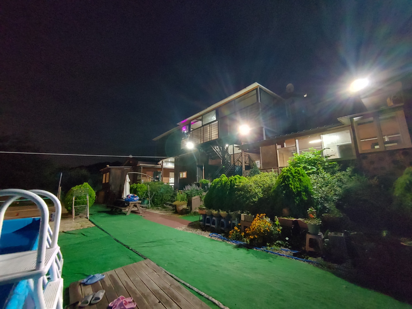그동안에 못했던 수다를 떨면서 휴가를 만끽하며 한참을 먹고 나니 벌써 날이 깜깜해졌네요. 이몽기가 펜션의 또 하나의 반전 포인트는 밤에 바라보는 펜션이 정말 이쁩니다. 활기찼던 낮과 반대의 모습에 시원하게 바람도 불고 커피 한잔의 여유도 느끼며 조용한 이몽기가 펜션만의 풍경을 느끼실 수 있습니다.