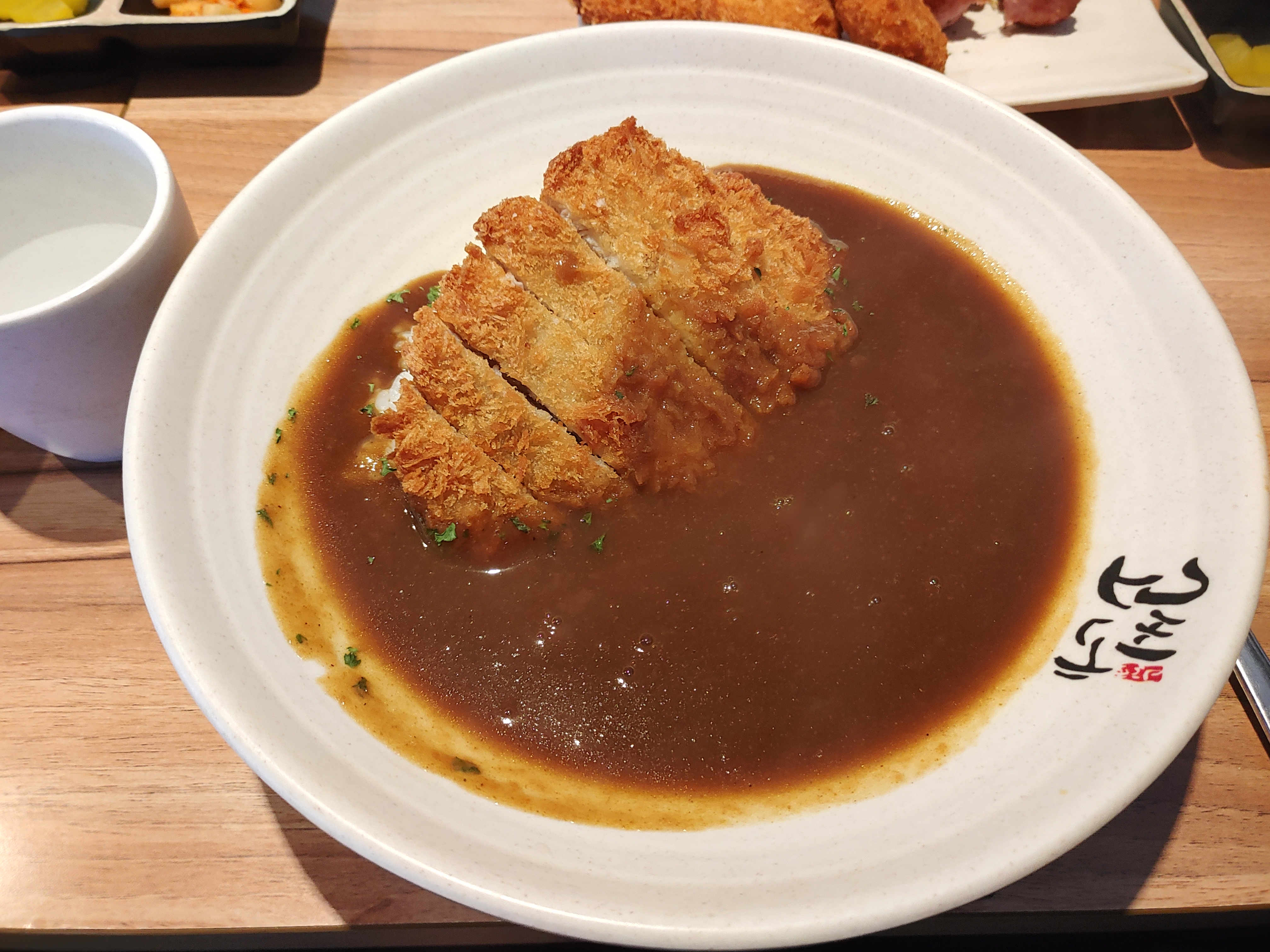 다음으로 메인 메뉴인 돈까스 카레가 나왔다. 카레에 밥과 돈까스가 같이 나왔다. 개인적으로 카레를 무지 좋아하는데 점심 한 끼 간단히 하기 좋은 메뉴 인듯하다. 메뉴가 대부분 튀김이라 많이 느끼할 줄 알았는데 오히려 깔끔한 맛을 느꼈다.