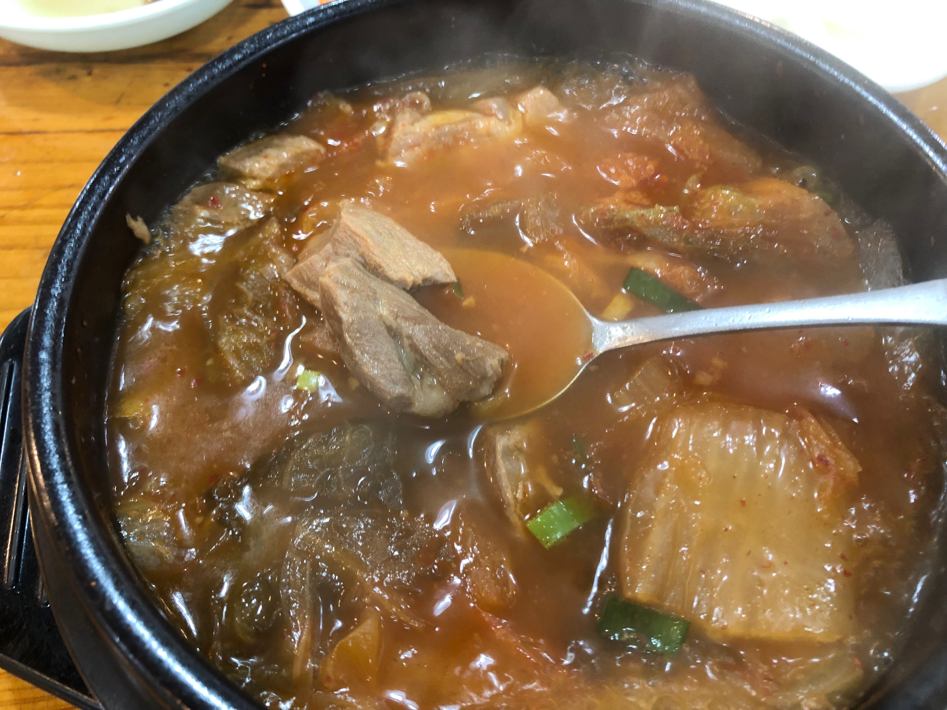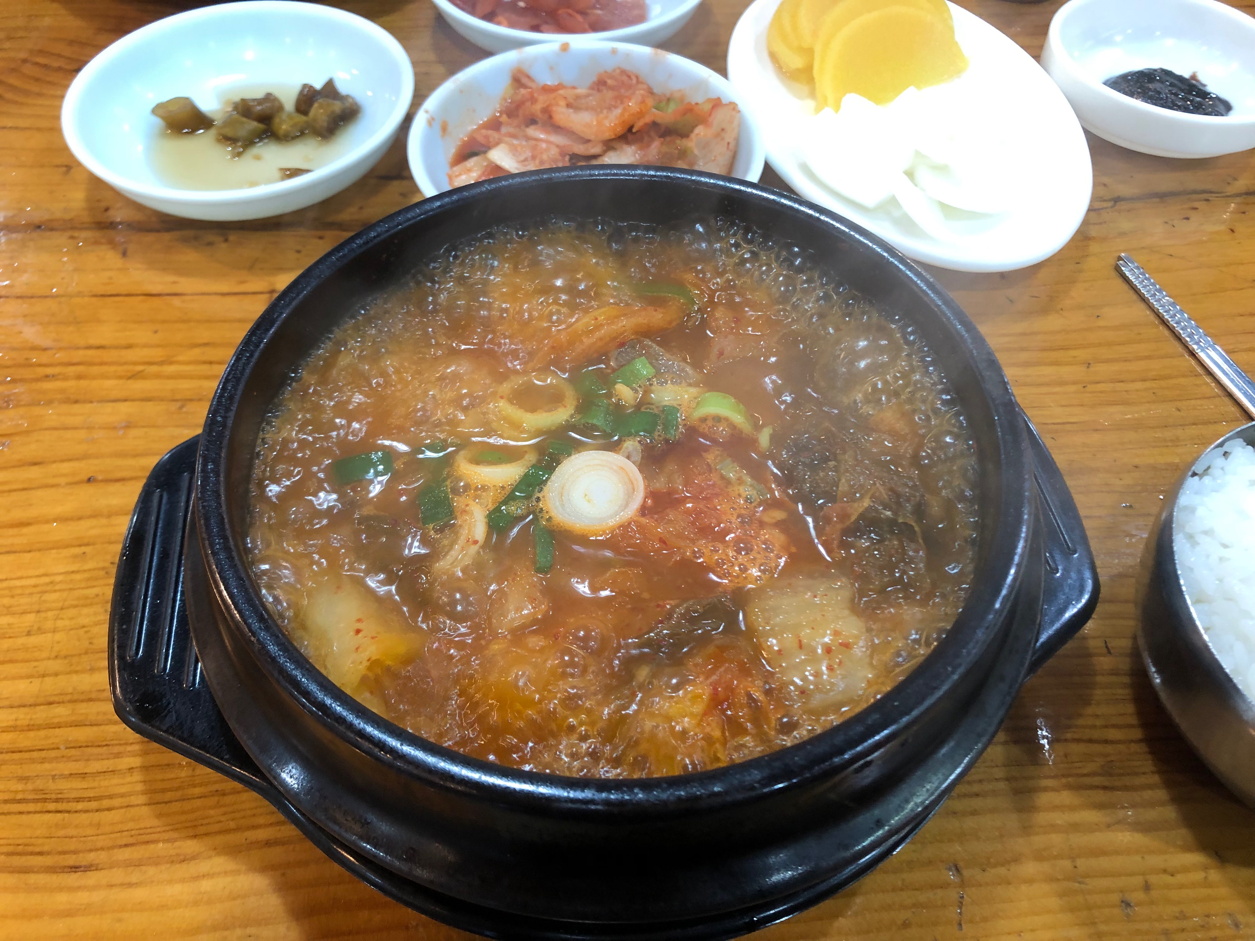 주문한 오모리찌개가 나왔다. 주매뉴가 나오는 동시에 2가지 반찬이 더 나온다. 살짝 비워보이기는 했지만 찌개가 정말 맛있고 시원해서 밑반찬은 생각이 나지 않았다.