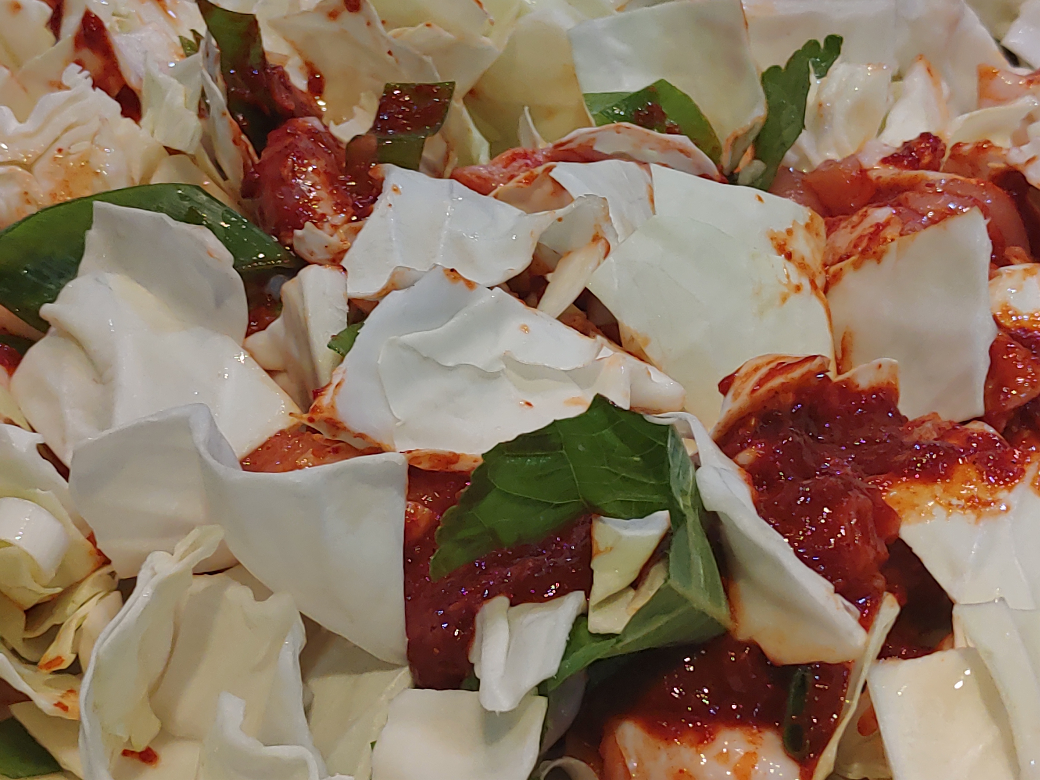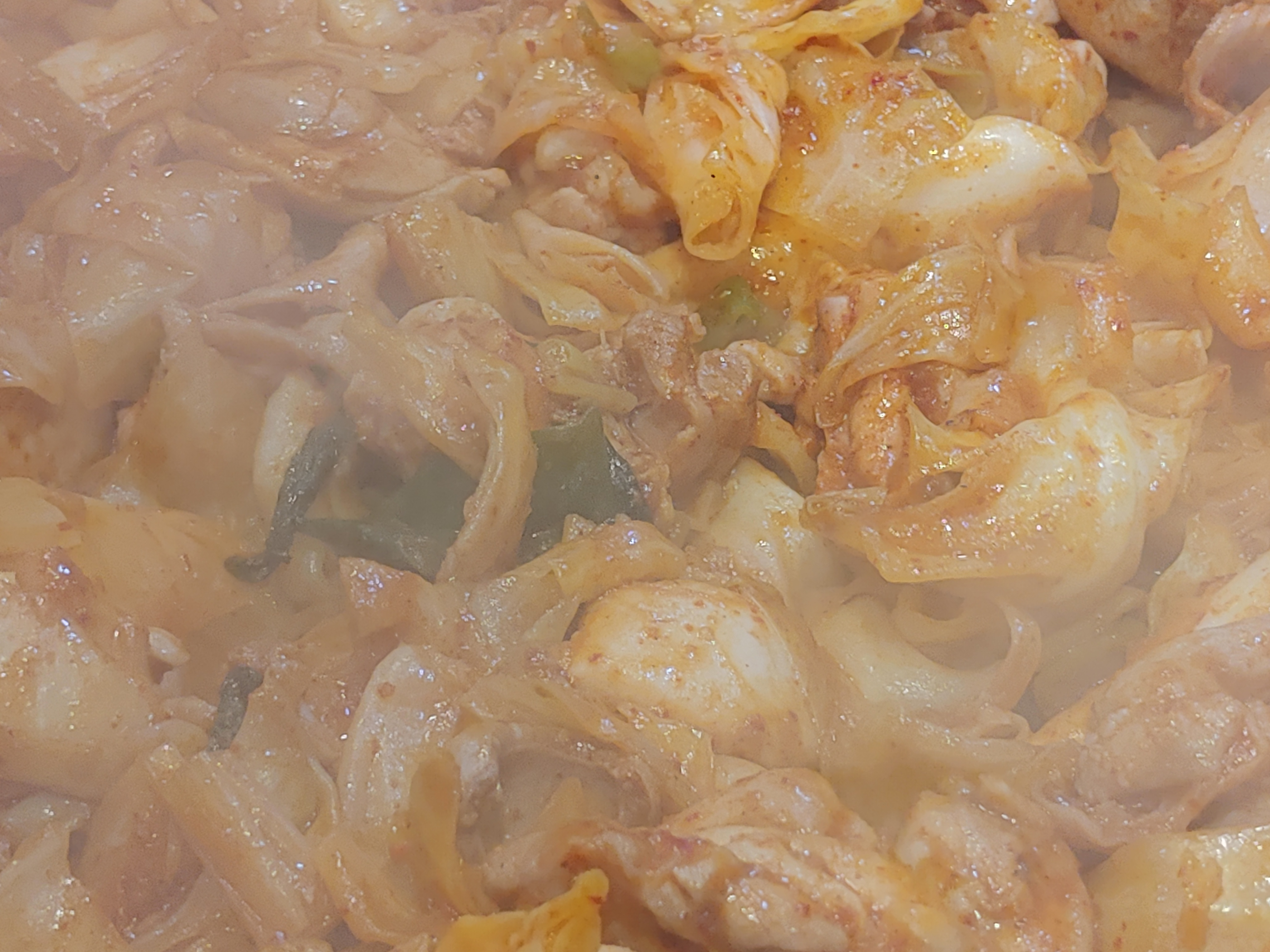 같이 있는 양배추가 숨이 죽으니 닭갈비와 닭내장에 양념이 잘 배어 있는 모습을 볼 수 있었다. 오랜만에 먹어보는 닭갈비라 그런지 닭고기의 육질도 쫄깃하고 양념도 잘 배어 있었다. 돼지껍질 같이 보이는 게 닭내장이다. 닭내장도 쫄깃하고 특히 양념맛이 맛있었다. 소주안주 하기에 정말 좋은 안주이다.