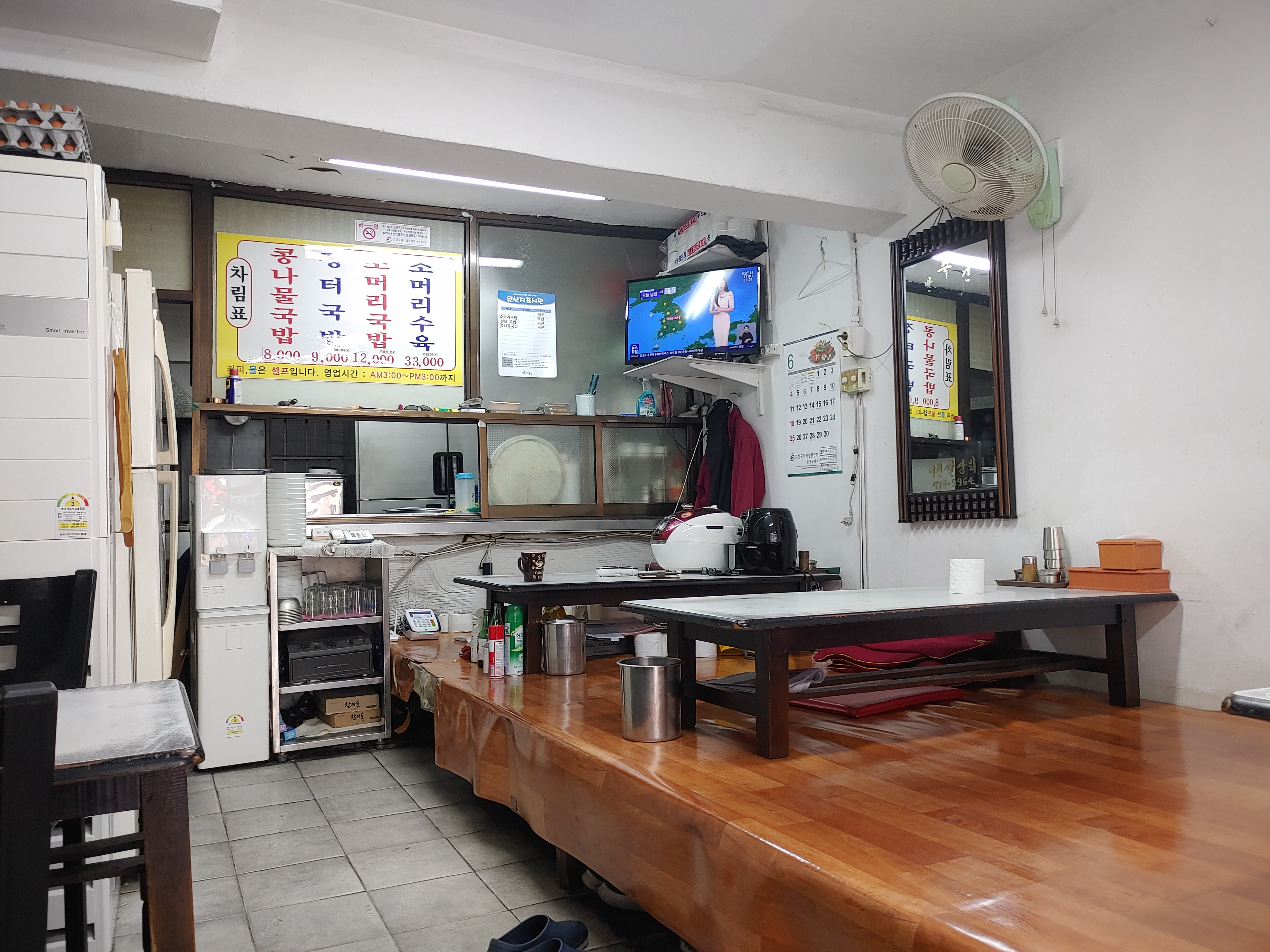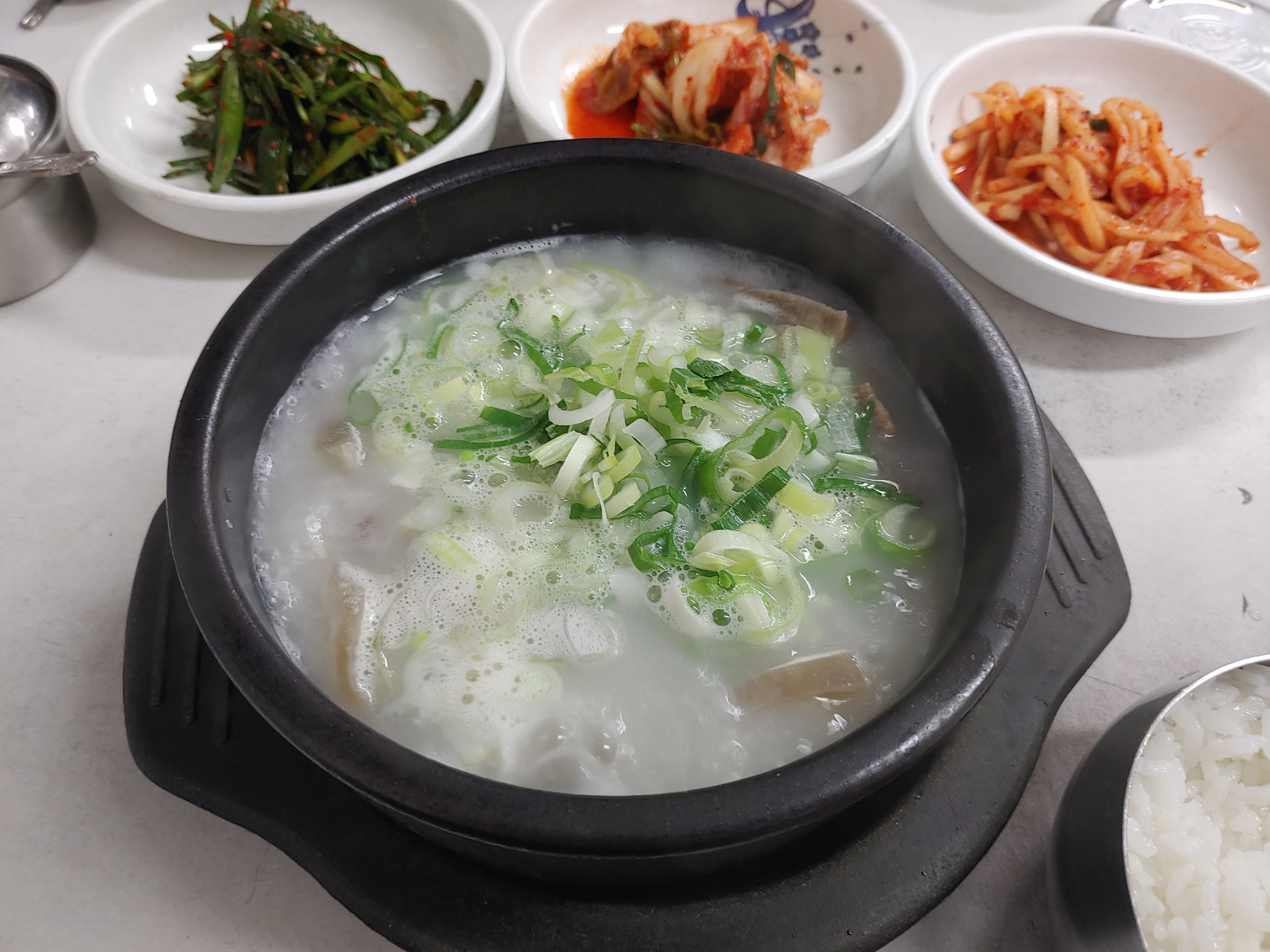 실내에는 테이블이 몇 개 없다. 특이한 점은 영업시간이 새벽 3시부터 오후 3시까지만 영업을 한다는 점이다. 아무래도 주변에 새벽부터 아침을 드시는 분이 많은듯하다. 처음에 콩나물 국밥을 주문하려 했는데 소머리국밥이 있어 소머리국밥을 주문했다.