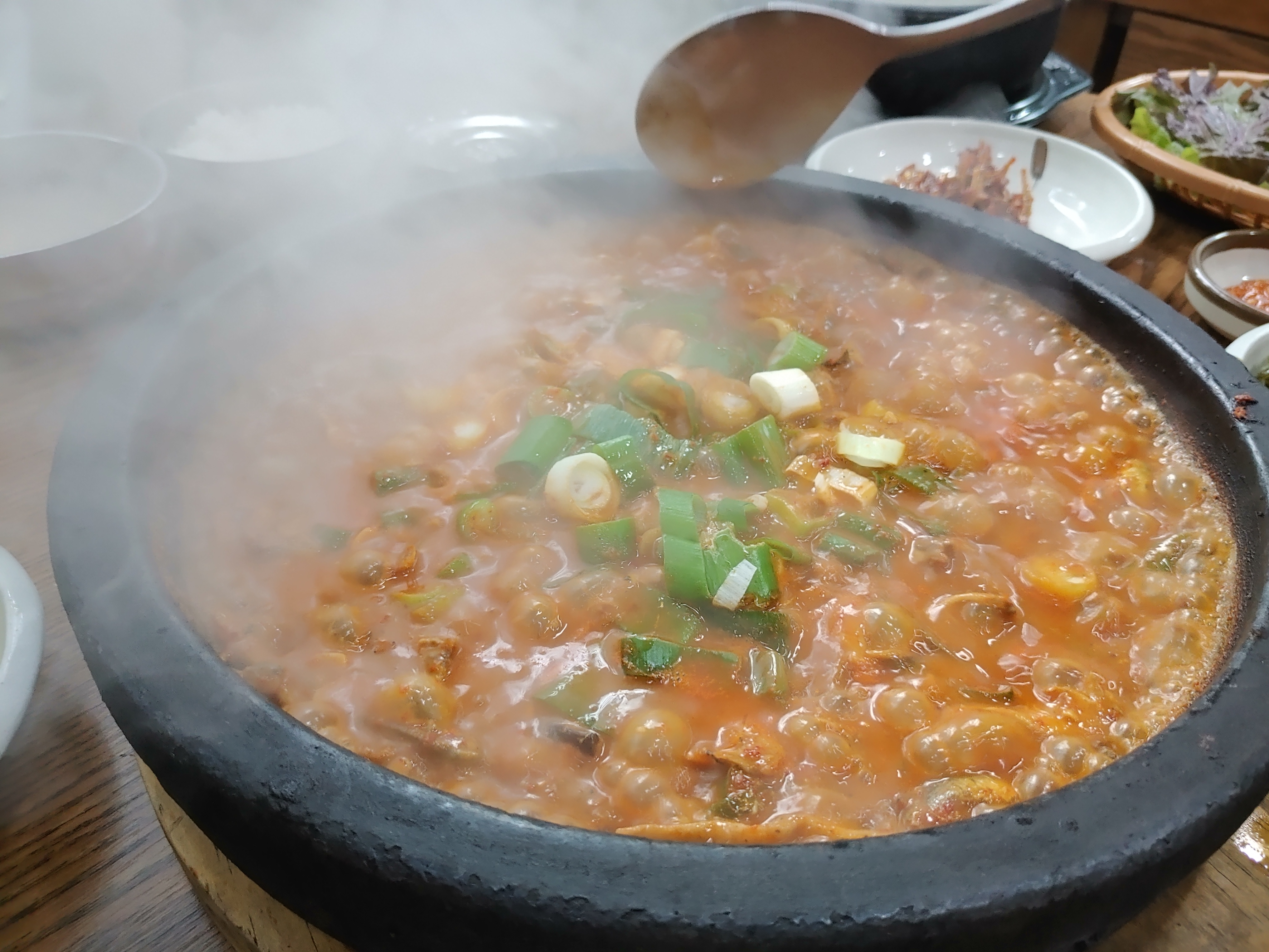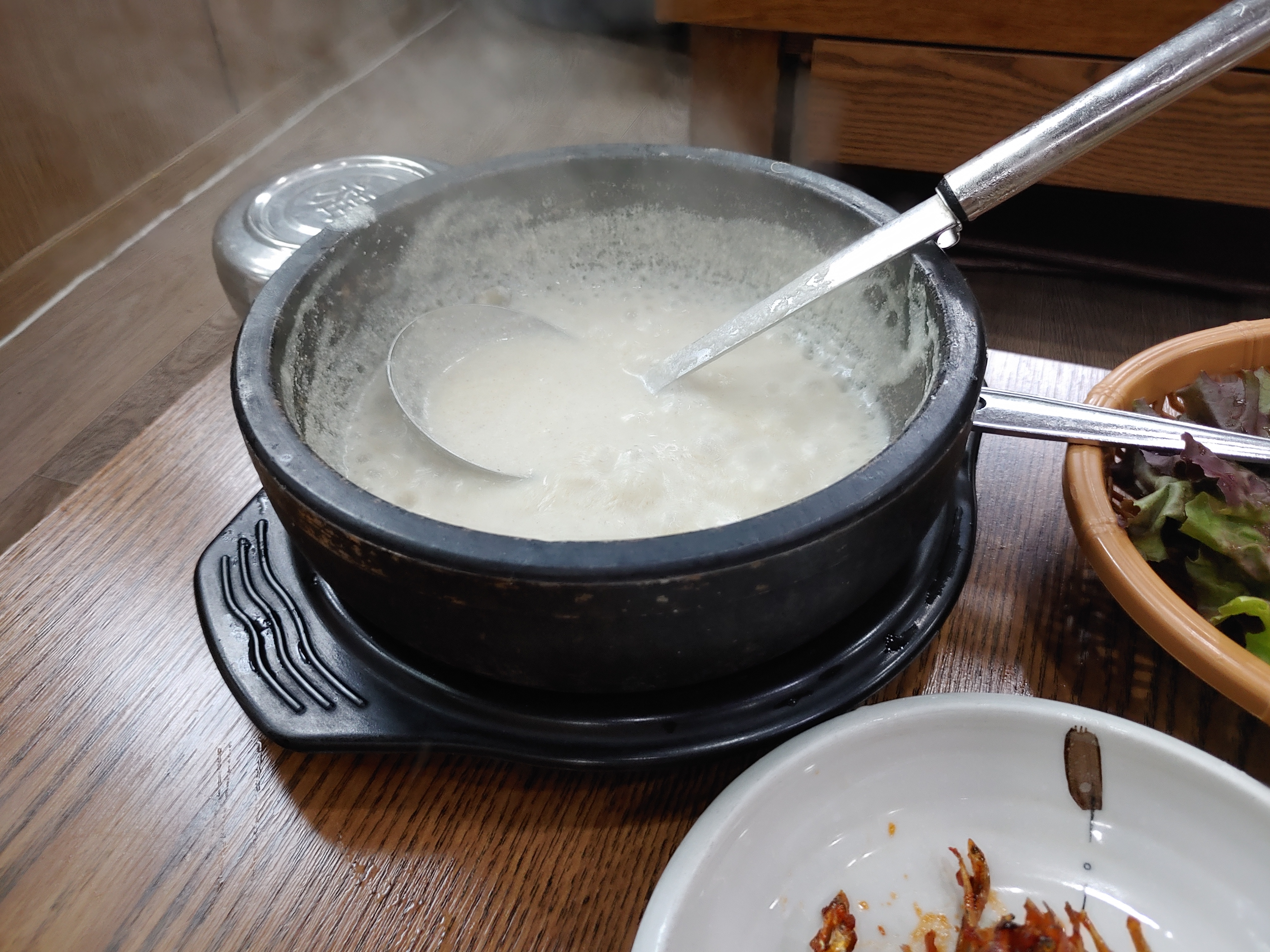 주문한 우렁이들깨탕이 나왔다. 걸쭉한 느낌의 들깨탕이지만 정말 고소하고 맛있다.