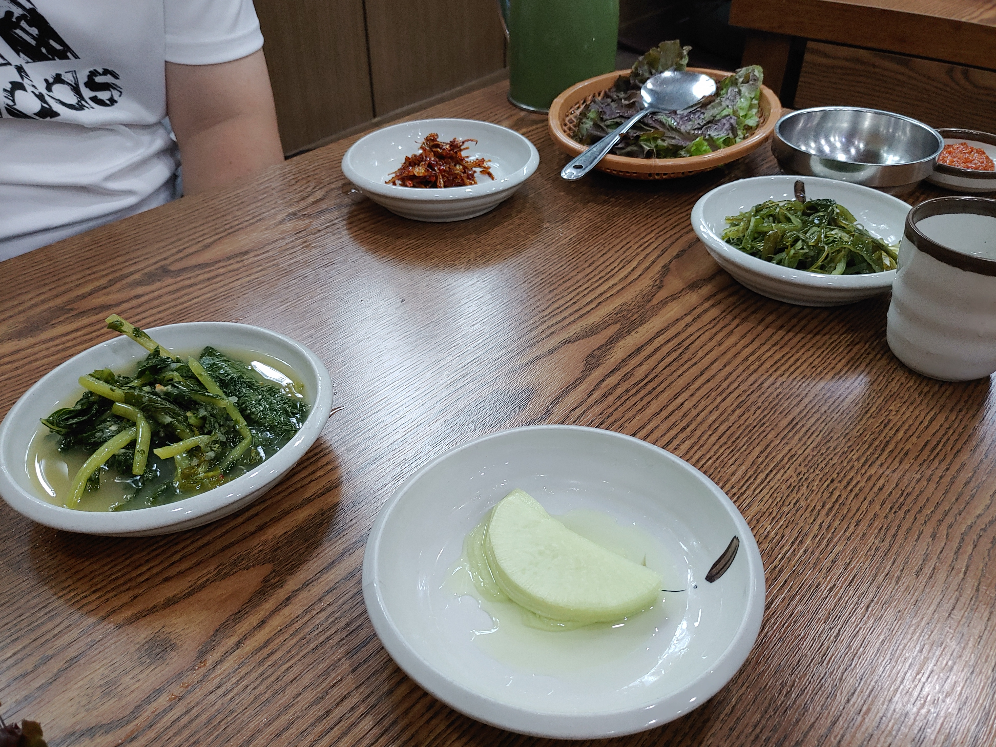 우선 우리는 멸치쌈밥과 우렁이들깨탕을 주문했다. 김해 현지인분께 들었는데 멸치쌈밥과 들깨탕을 같이 주문해서 먹으라 했다. 이유는 잘 몰랐지만 나중에 알게 됐다. 멸치쌈밥이 조금 매운데 들깨탕이 매운맛을 중화시켜 주는 느낌이 들었다.