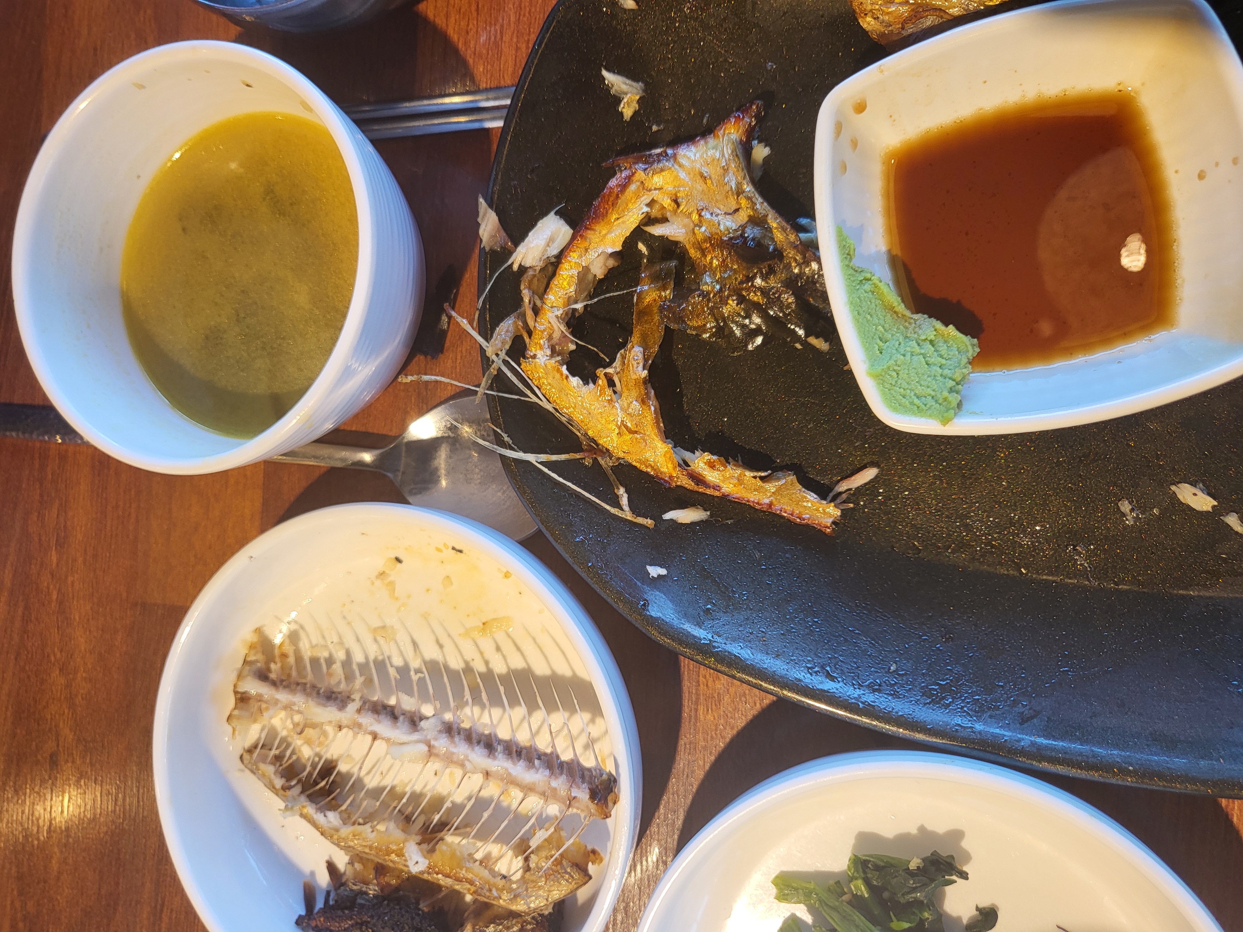 허겁지겁 먹고 나니 생선에 뼈만 남아있다. ㅎㅎ 생선구이는 언제나 맛있는 것 같다.^^