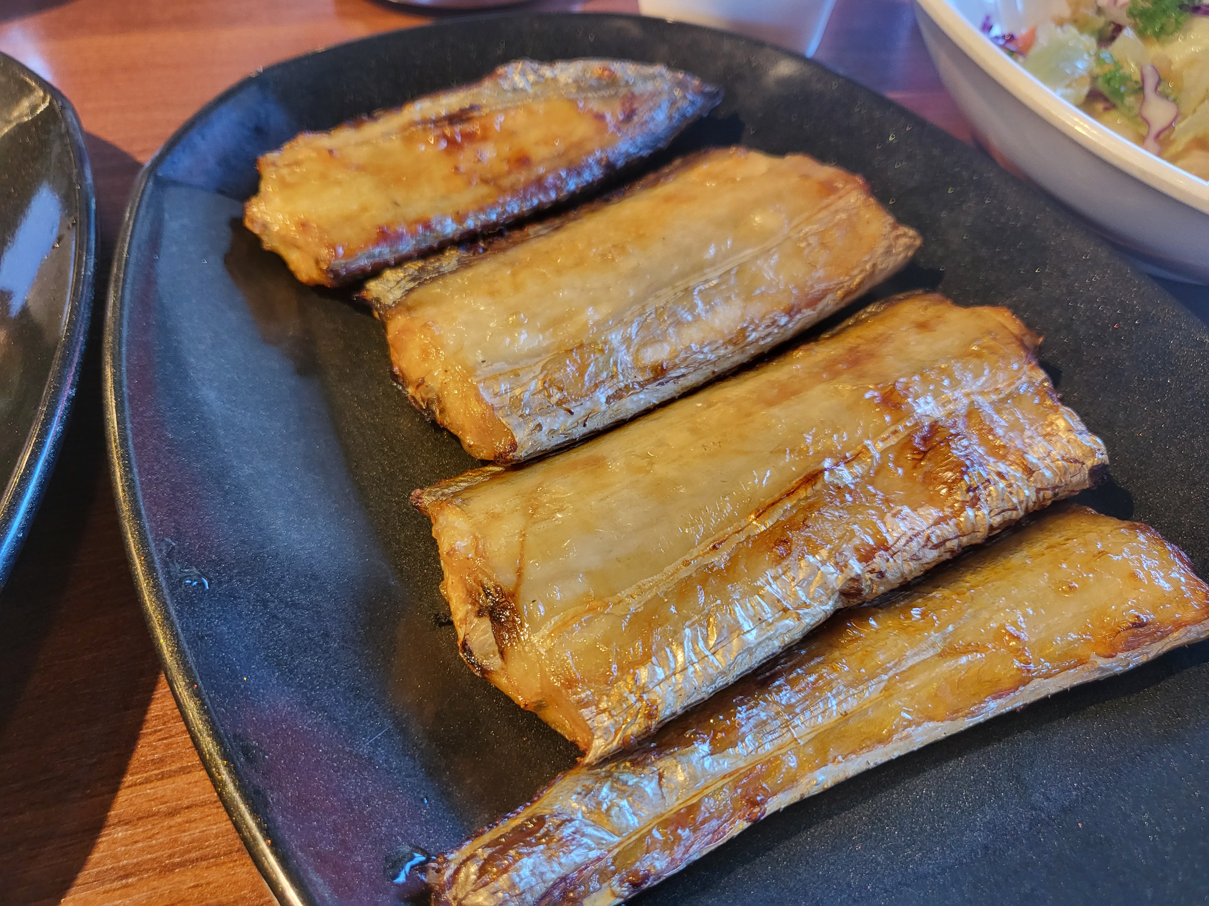 허기진 배를 달래고 있을 때쯤 주문한 고등어구이와 갈치구이가 나왔다. 고등어구이와 갈치구이에서 기름기가 좔좔 흐르는 게 군침이 돈다. 집에서는 아무리 생선을 튀겨도 이렇게 까지는 나오지 않는다. 생선 튀기는 비법을 묻고 싶지만 소심한 나는 참아본다.